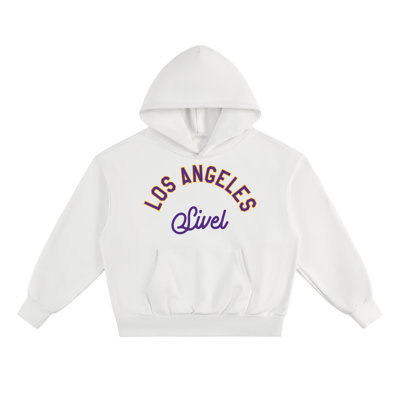The front features a purple Los Angeles–style logo with a gold outline, paired with SIVEL text in matching purple for a clean, unified look. On all four hoodie colors, the print delivers a timeless court-side presence without using any official team branding. The back remains blank for a sharp, minimal silhouette.