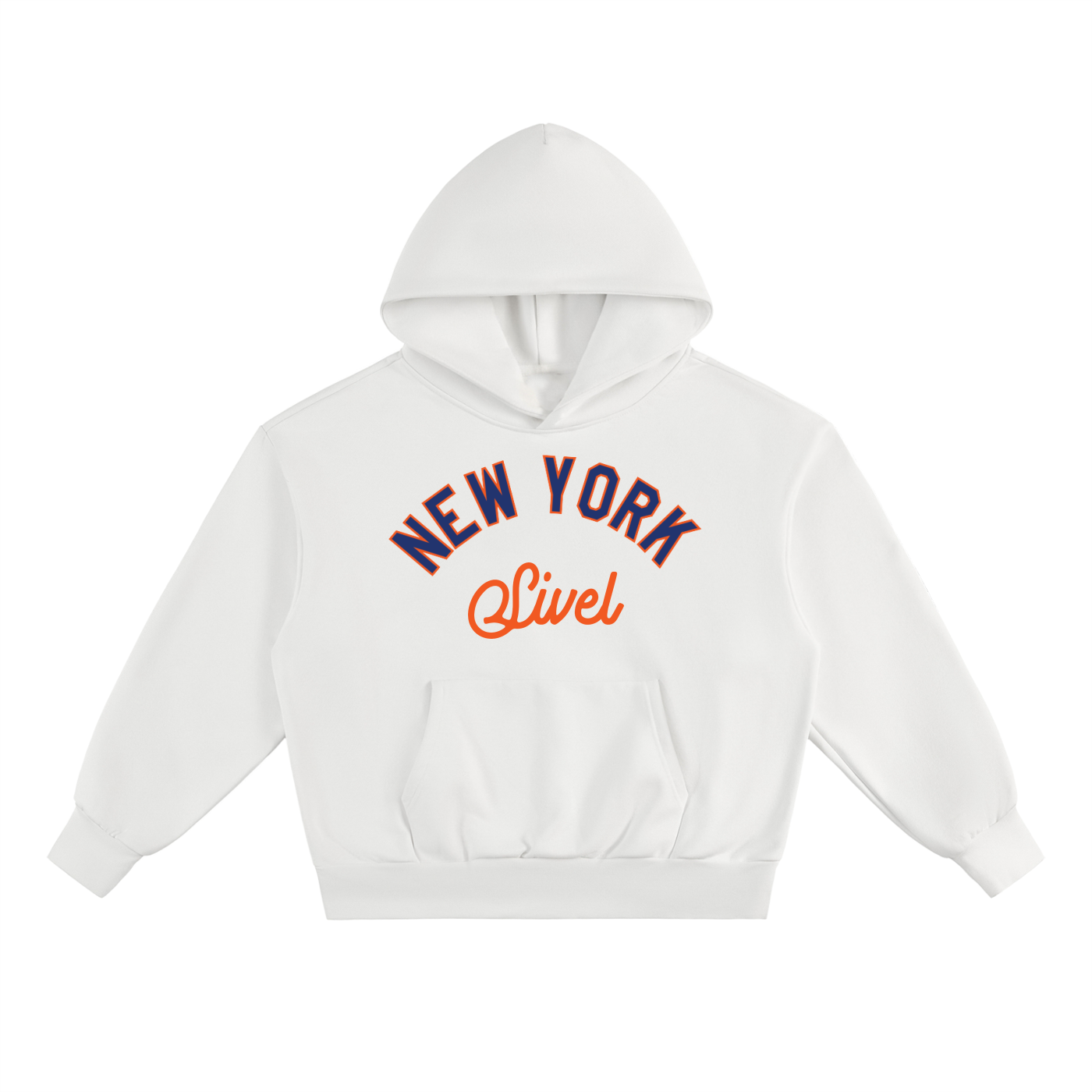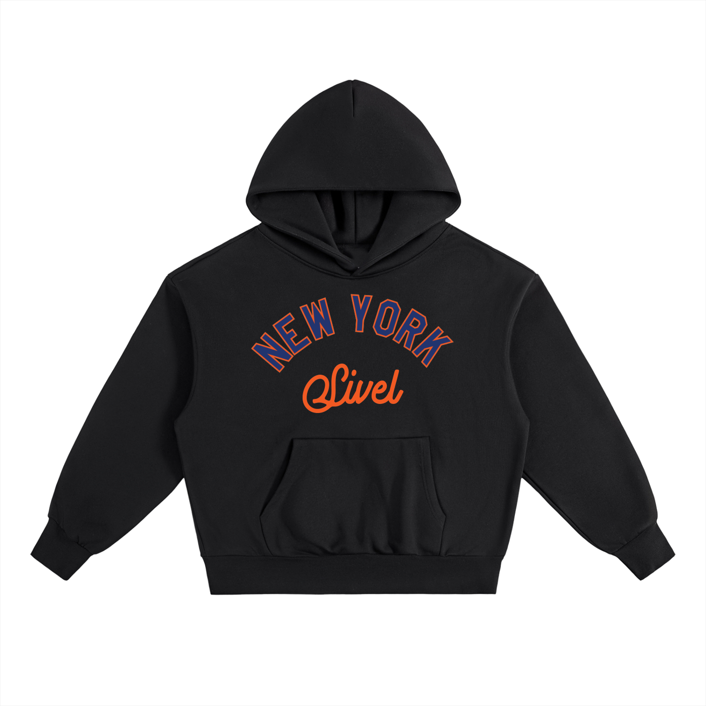 The front features a NY-style logo in navy with an orange outline, paired with SIVEL text in bright orange below — a dynamic contrast that pops across all four hoodie colorways. The back remains clean and minimalist, letting the premium construction and bold chest artwork take center stage.