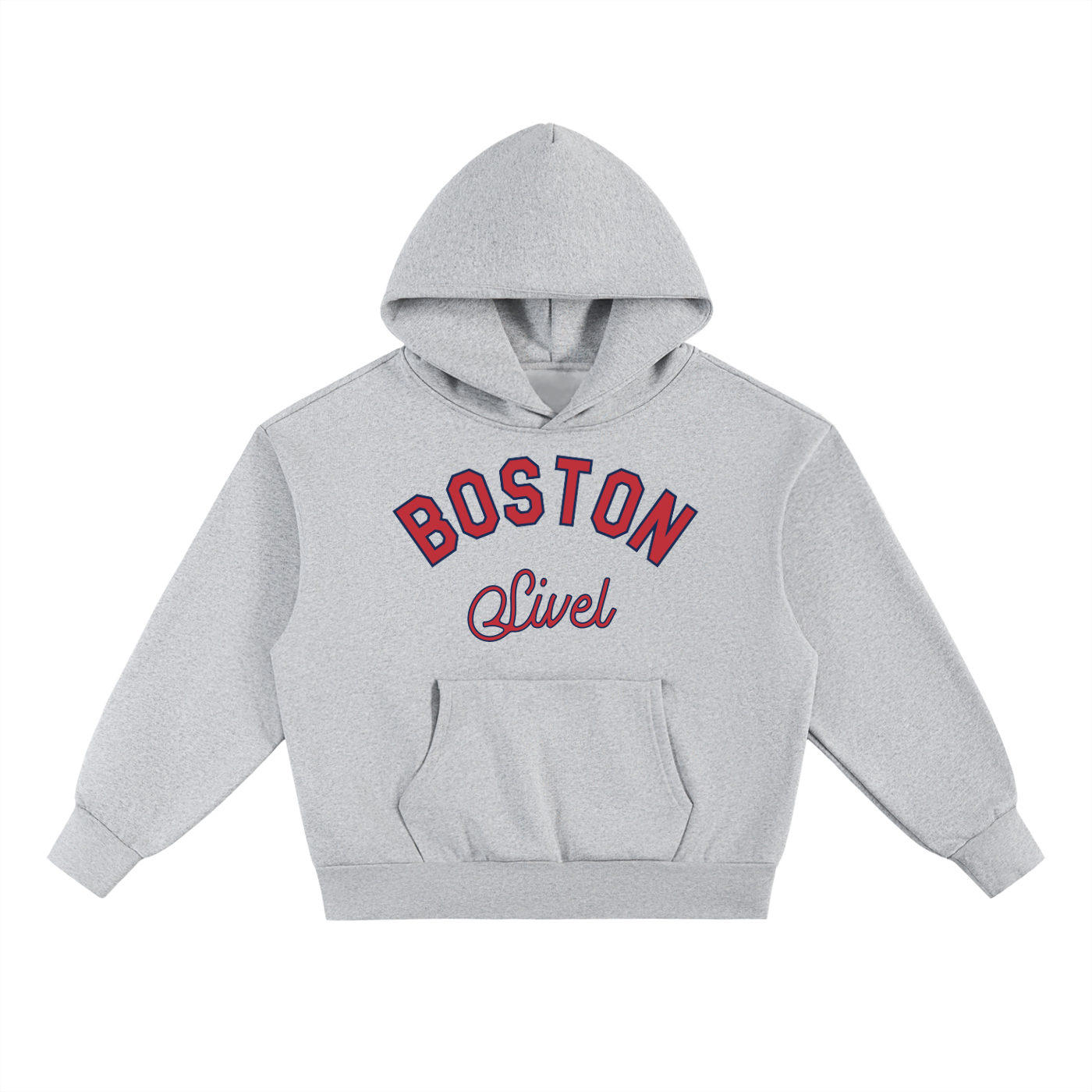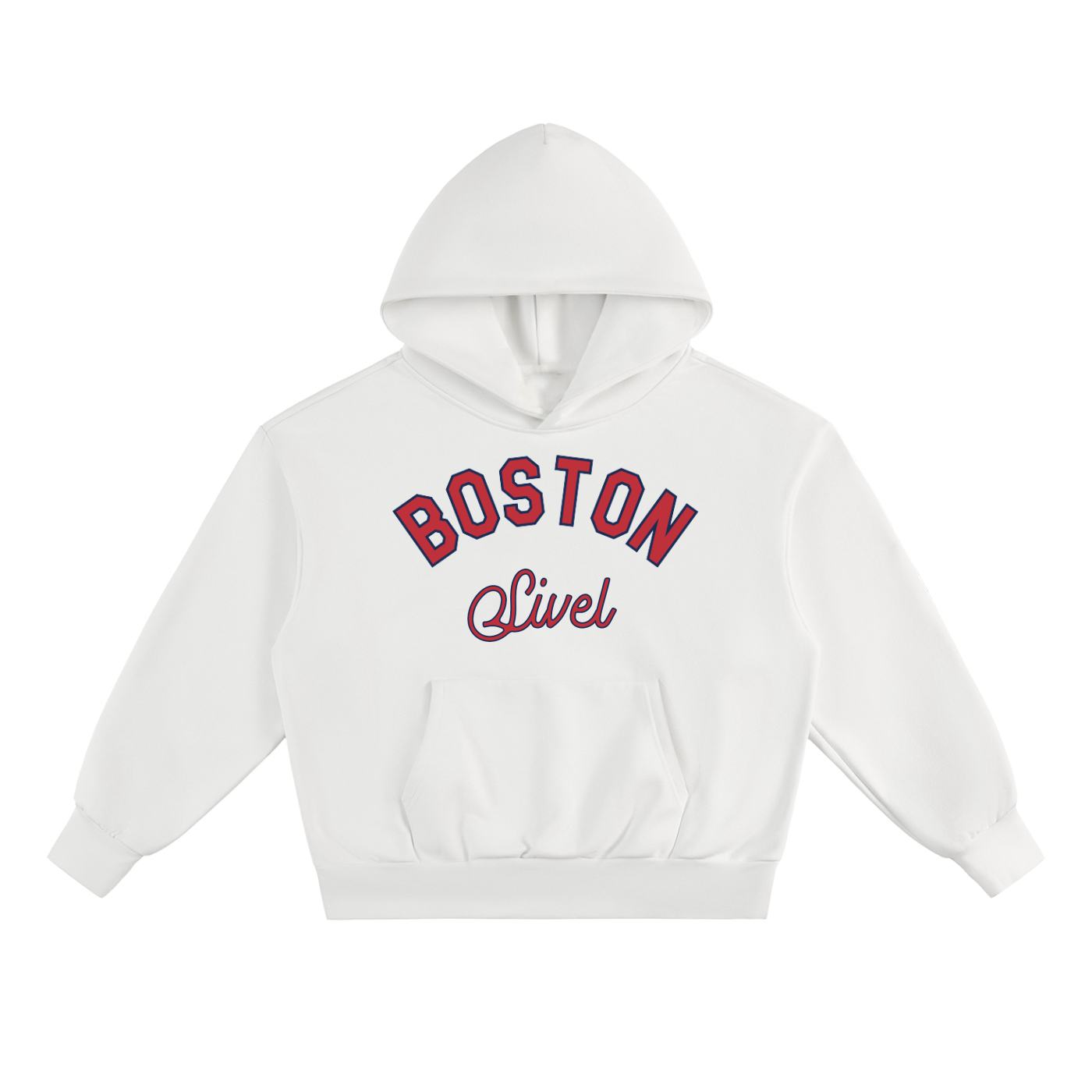 With drop shoulders, a kangaroo pocket, and unisex oversized fit, the BOSTON HERITAGE hoodie merges athletic inspiration with modern streetwear, making it a versatile piece for layering, casual wear, or city-inspired style.