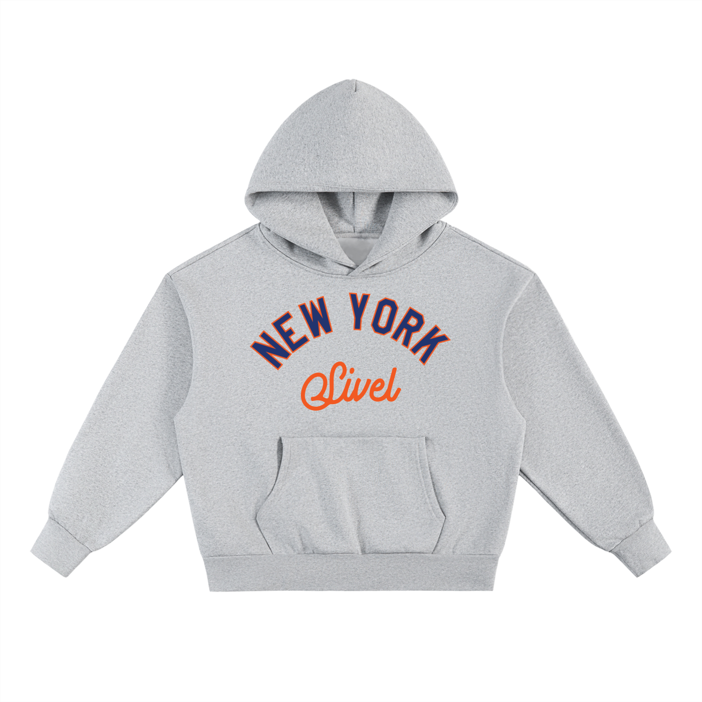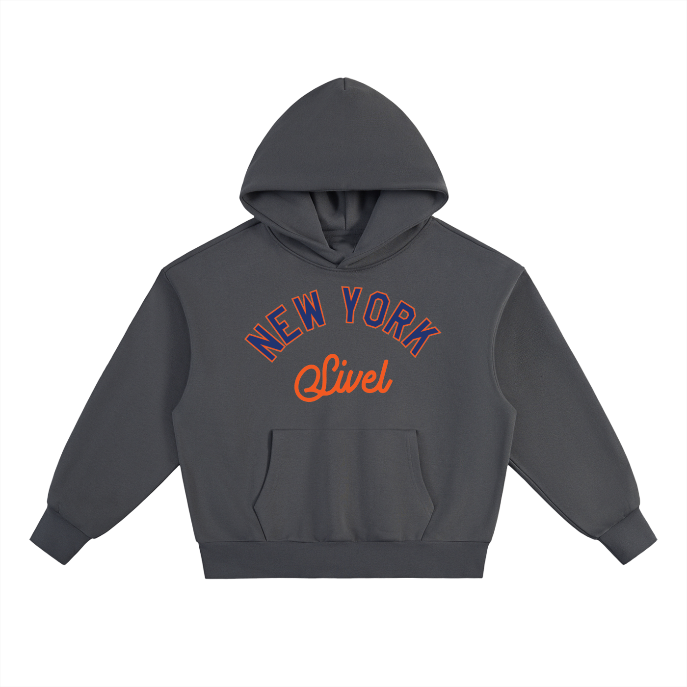 The front features a NY-style logo in navy with an orange outline, paired with SIVEL text in bright orange below — a dynamic contrast that pops across all four hoodie colorways. The back remains clean and minimalist, letting the premium construction and bold chest artwork take center stage.